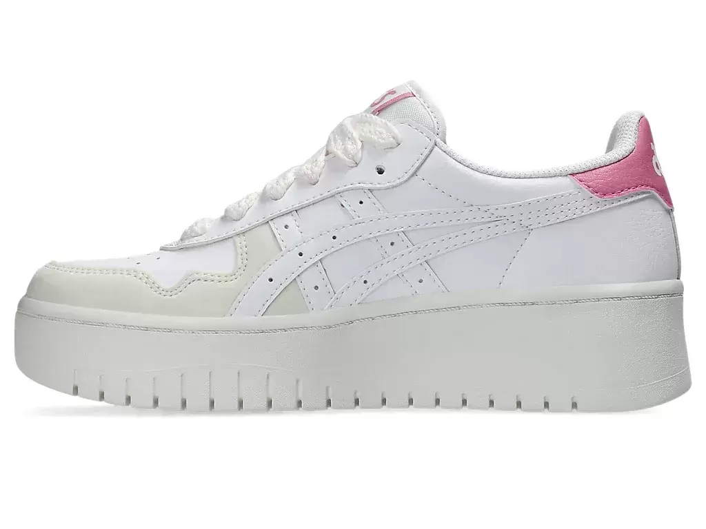 The JAPAN S™ PF shoes are based on one of our throwback offerings from 1981. This women’s exclusive silhouette has been reimagined with neutral tones, while the traditional midsole has been replaced with a platform design for better cushioning. Mimicking the aesthetic of a retro basketball sneaker, this heritage style is also paired with nostalgic branding, like the ASICS® Stripes on the quarter-panels and “ASICS” lettering at the heel. The JAPAN S™ PF shoe’s vintage basketball aesthetic is paired with iconic court-specific details that are inspired by footwear worn on the hardwood by basketball players in the 80s.